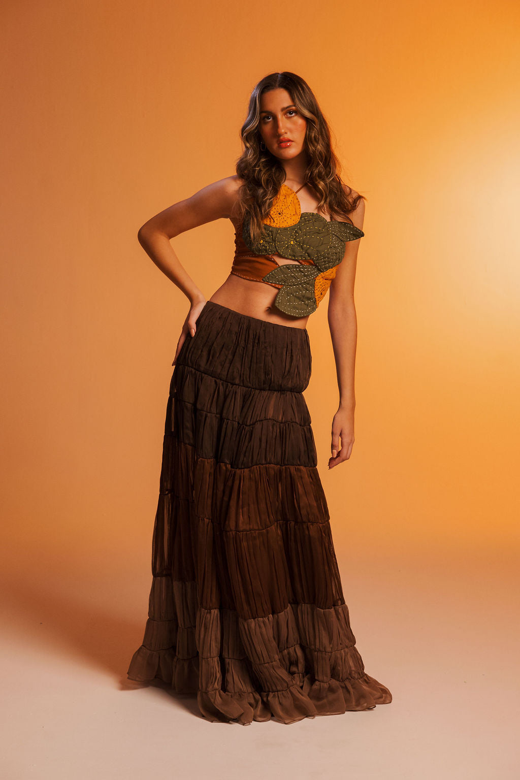 A true artisanal statement piece. The Bon Crop Top is crafted from layered cotton shapes, molded by hand. Featuring delicate hand-embroidery and an open back with thin adjustable straps and ceramic bead finishes. Ideal for elevated summer looks.
