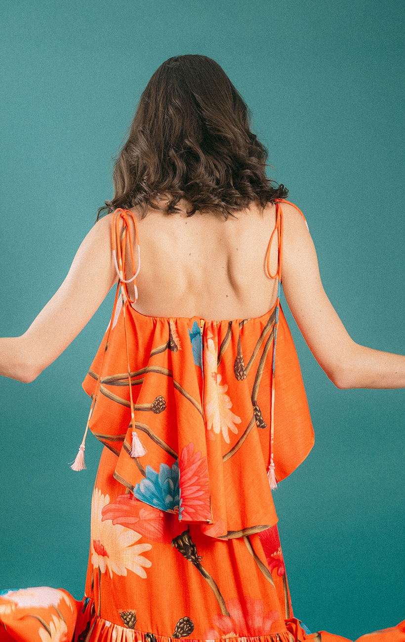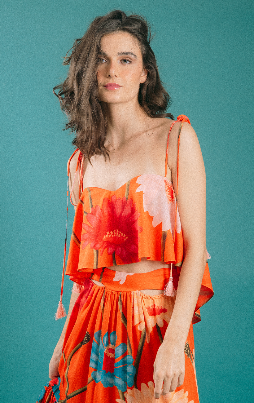 Crop top asimétrico con volumen y corte tipo corazón en la parte delantera, tirantes en la parte superior para dar un mejor ajuste a la prenda.