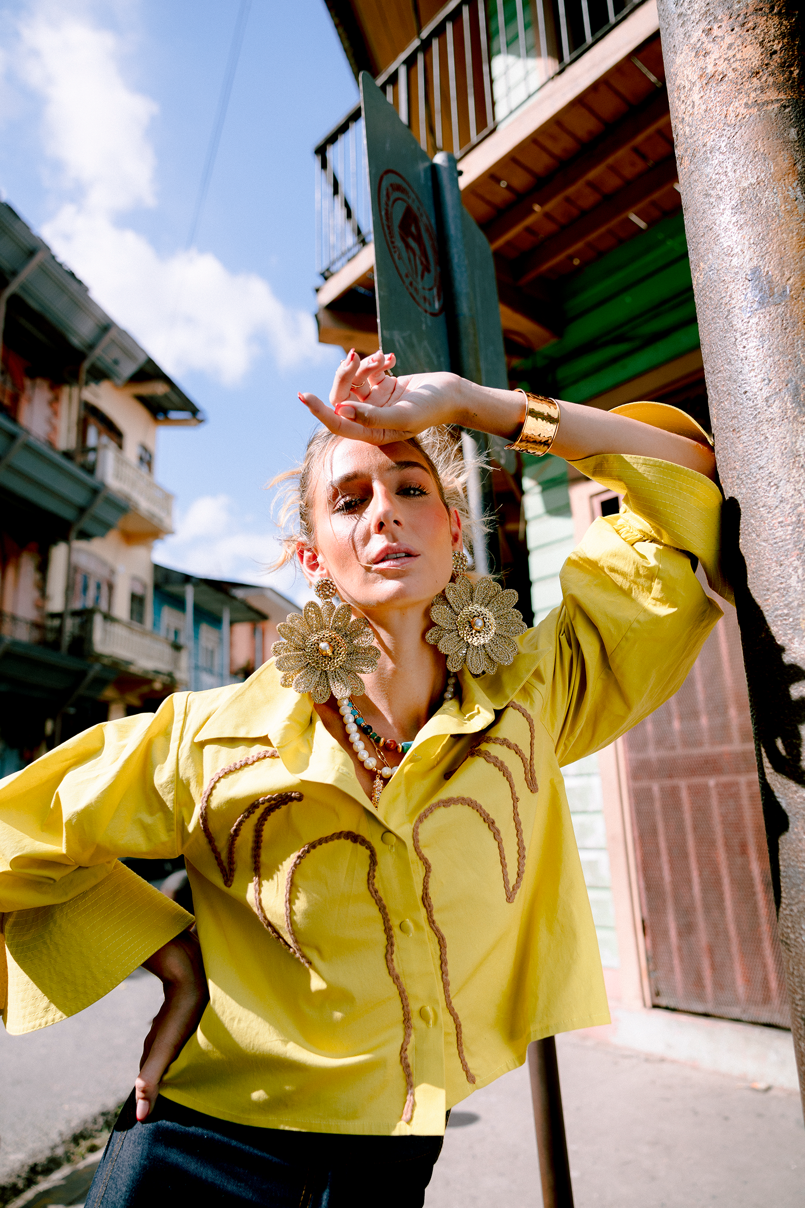 Boxy 100% cotton shirt featuring palm embroidery in cotton cord and topstitched cuffs. Its handcrafted detailing and vibrant color make it a standout piece for warm-weather dressing.